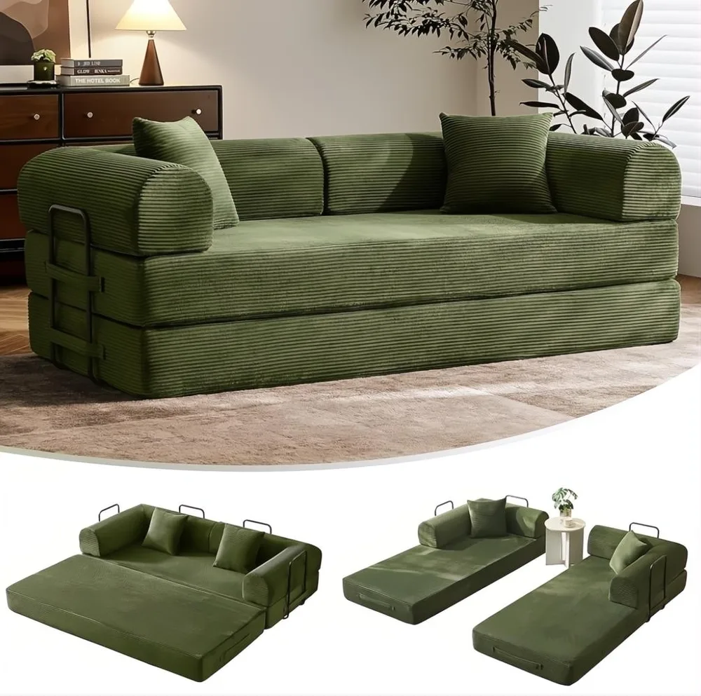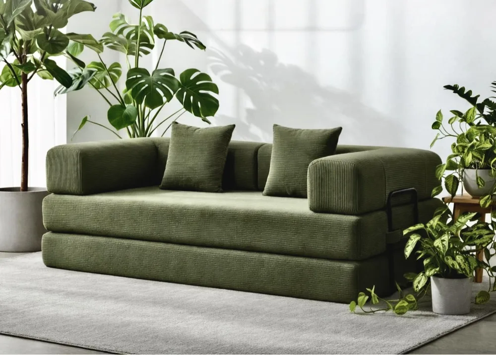 ספה מודולרית ירוקה מבד קורדרוי - עיצוב גמיש ונוחות מירבית