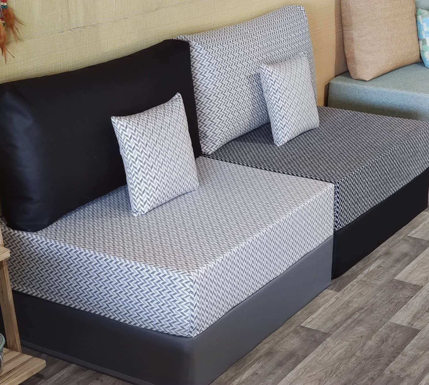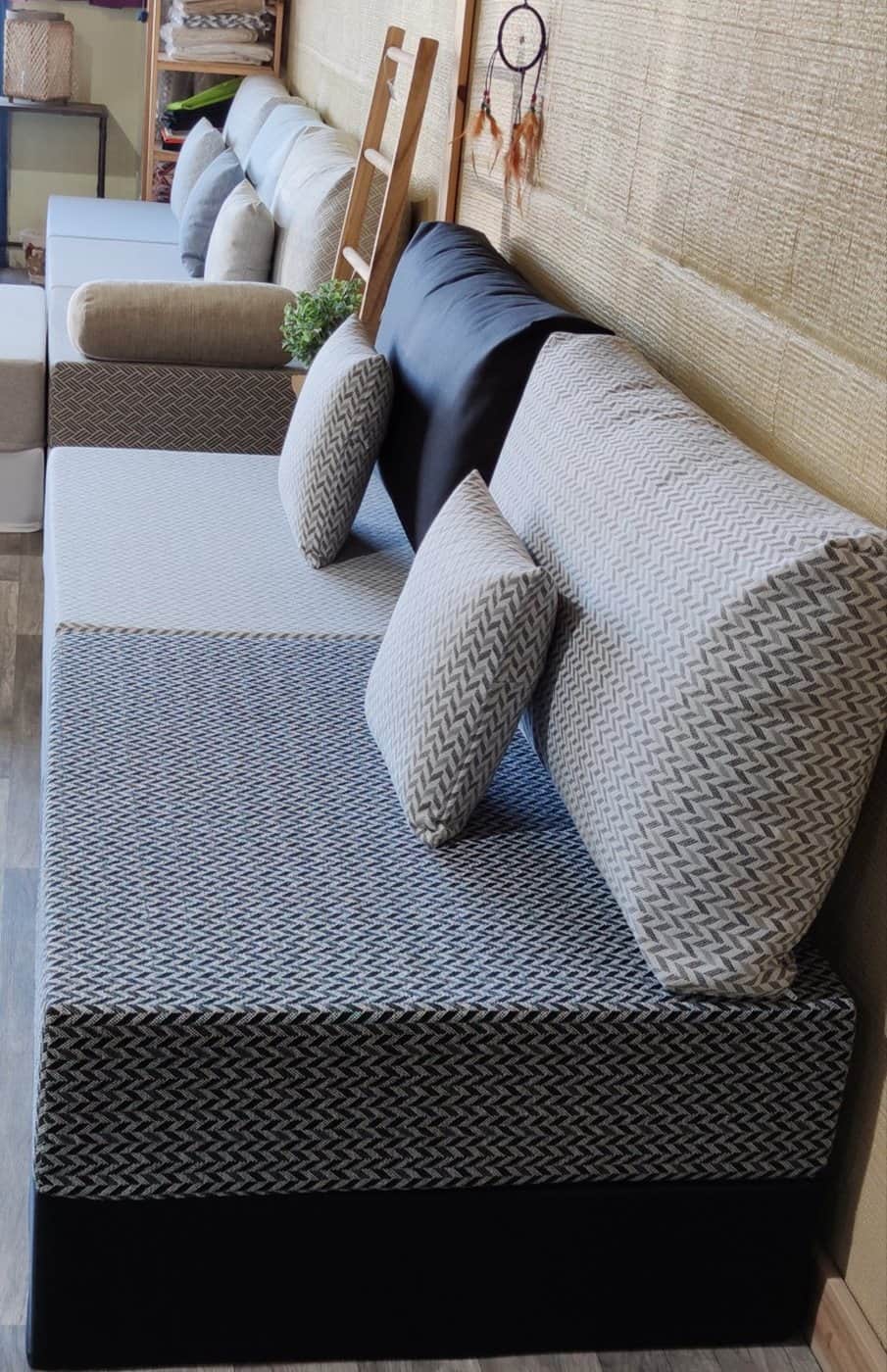 בפינת רביצה זו שילבנו שני סוגי בדים.